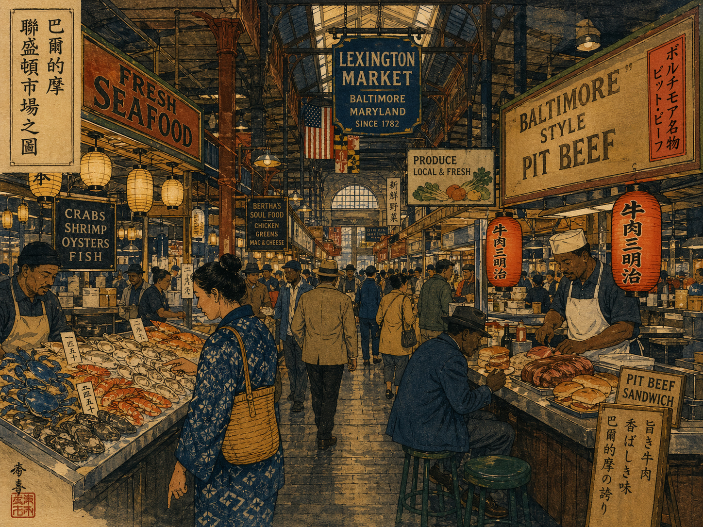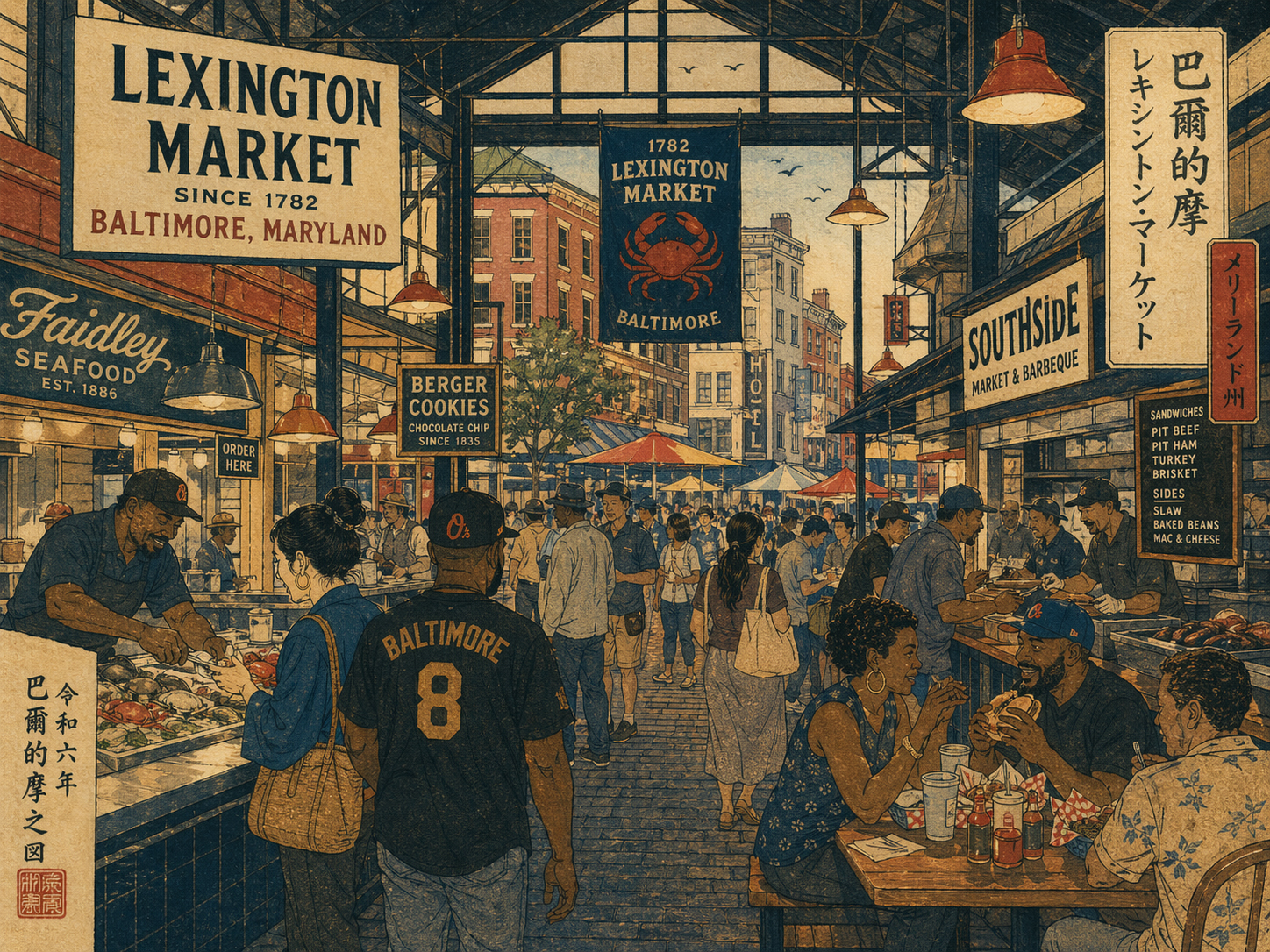 食は土地の短い説明ではありません。蟹を割る手、牡蠣の冷たさ、ボードウォークのフライ、甘いケーキの層が、メリーランドを身体の記憶に変えます。